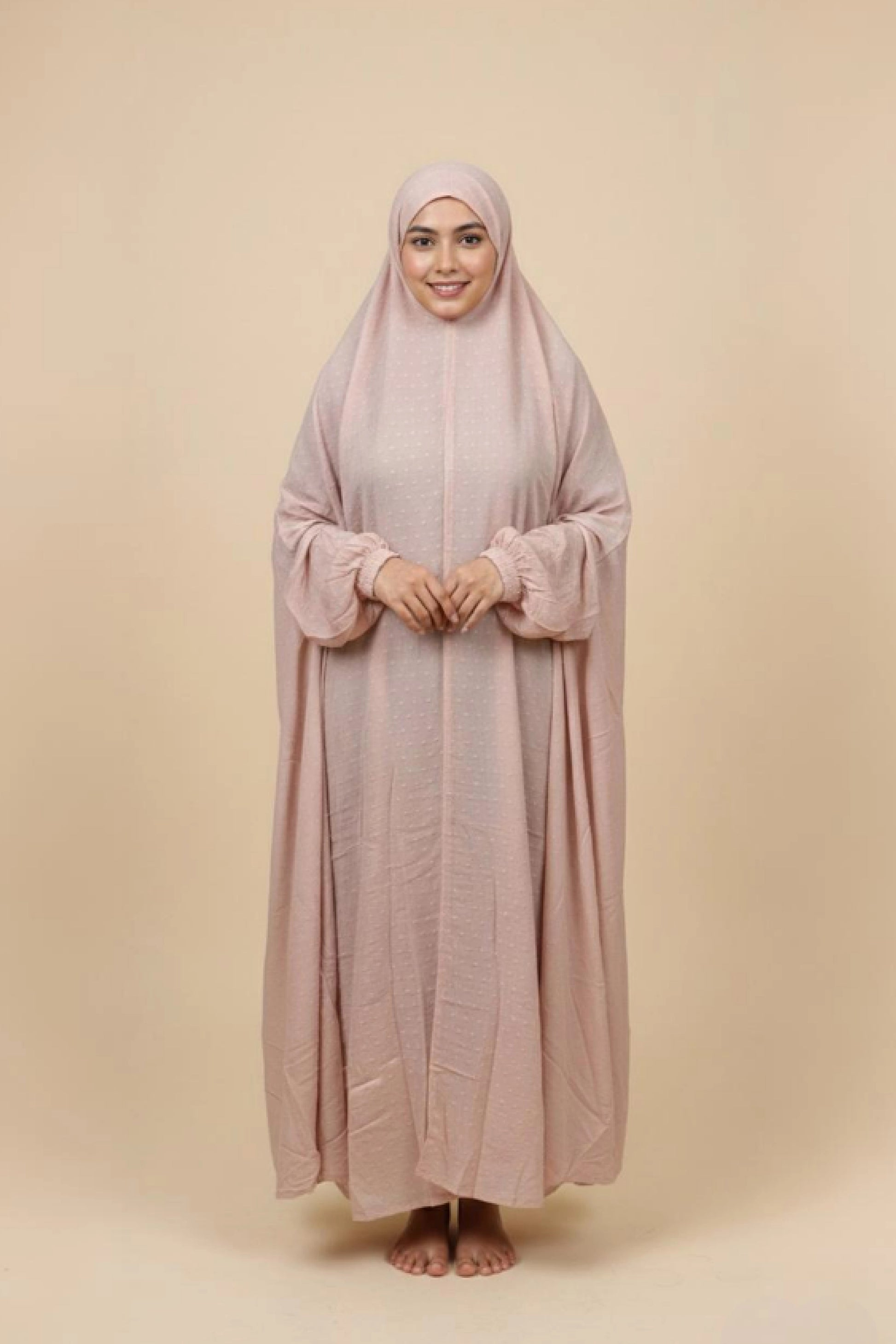 Experience ultimate comfort and modest elegance with our Blush Breeze Prayer Set. Crafted from premium Arabic Lawn fabric, this prayer dress is incredibly soft, breathable, and lightweight, perfect for daily prayers.