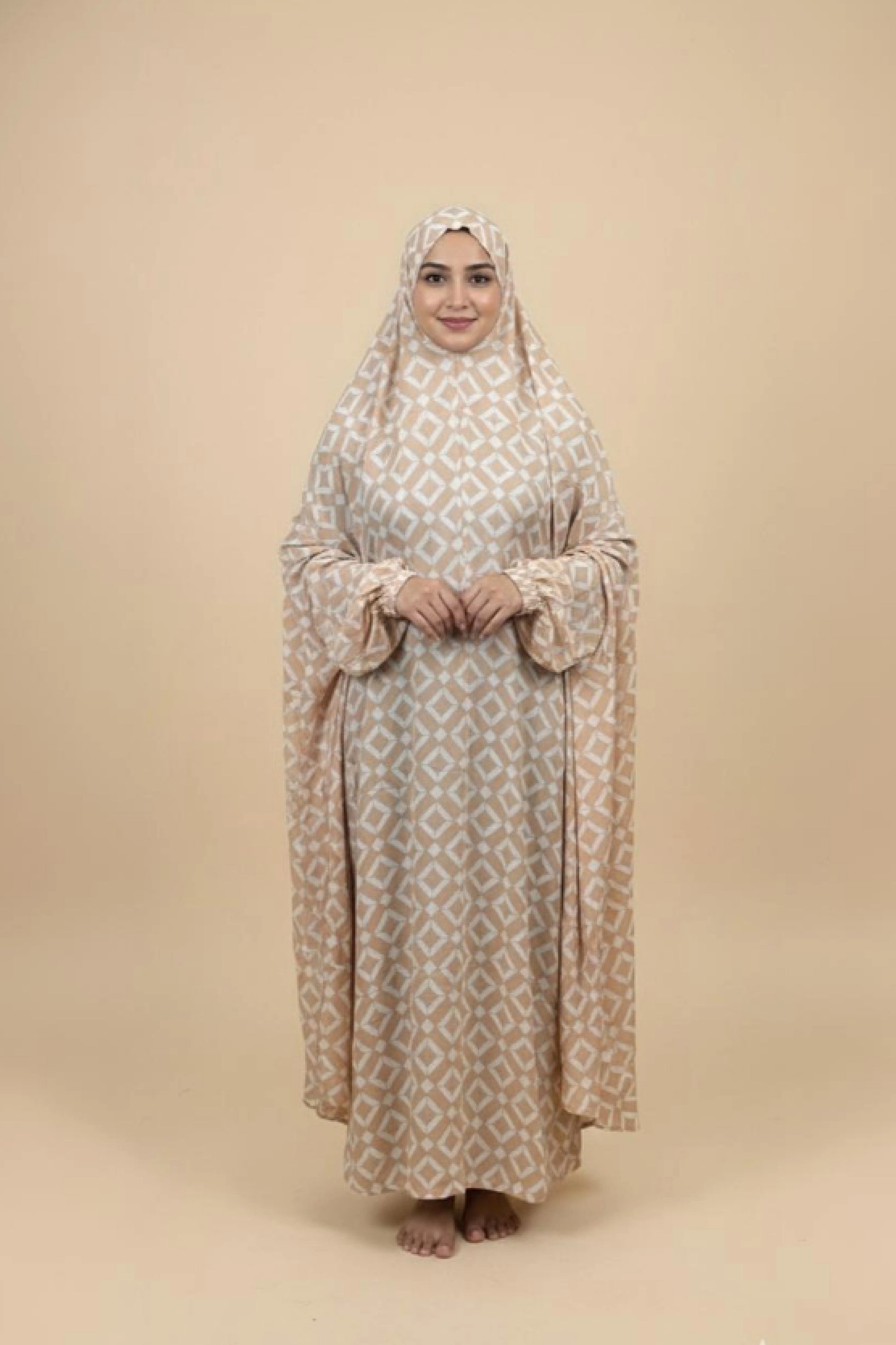 Experience ultimate comfort and modest elegance with our Geometric Grace Prayer Set. Crafted from premium Arabic Lawn fabric, this prayer dress is incredibly soft, breathable, and lightweight, perfect for daily prayers.